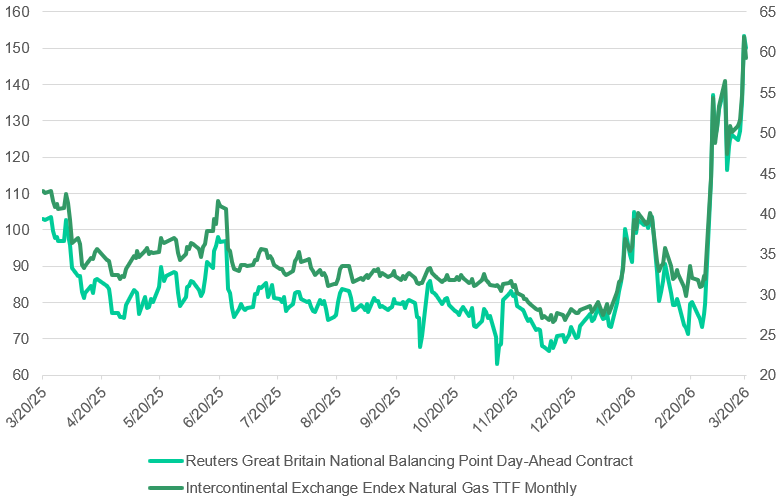 Chart 1: European Gas Prices. Source: LSEG Workspace, 22/03/2026