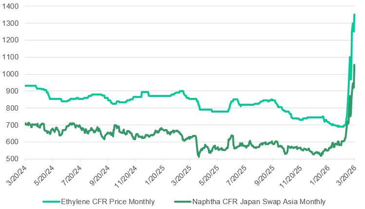Chart 5: Energy Shock Cascades Through the Petrochemical Chain. Source: LSEG Workspace, 22/03/2026