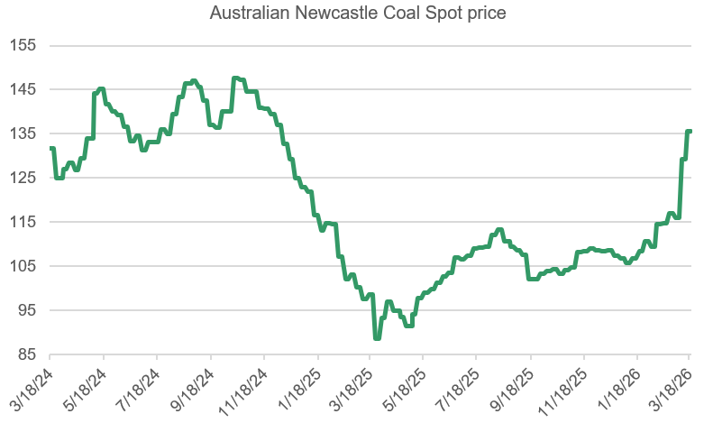 Chart 3: Australia Newcastle Coal Spot Price. Source: LSEG Workspace, 22/03/2026