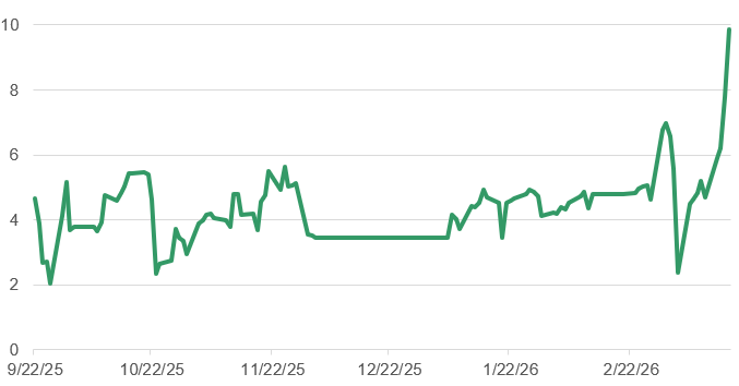 Chart 4: Brent-WTI Month Average Spread Contract. Source: LSEG Workspace, 22/03/2026